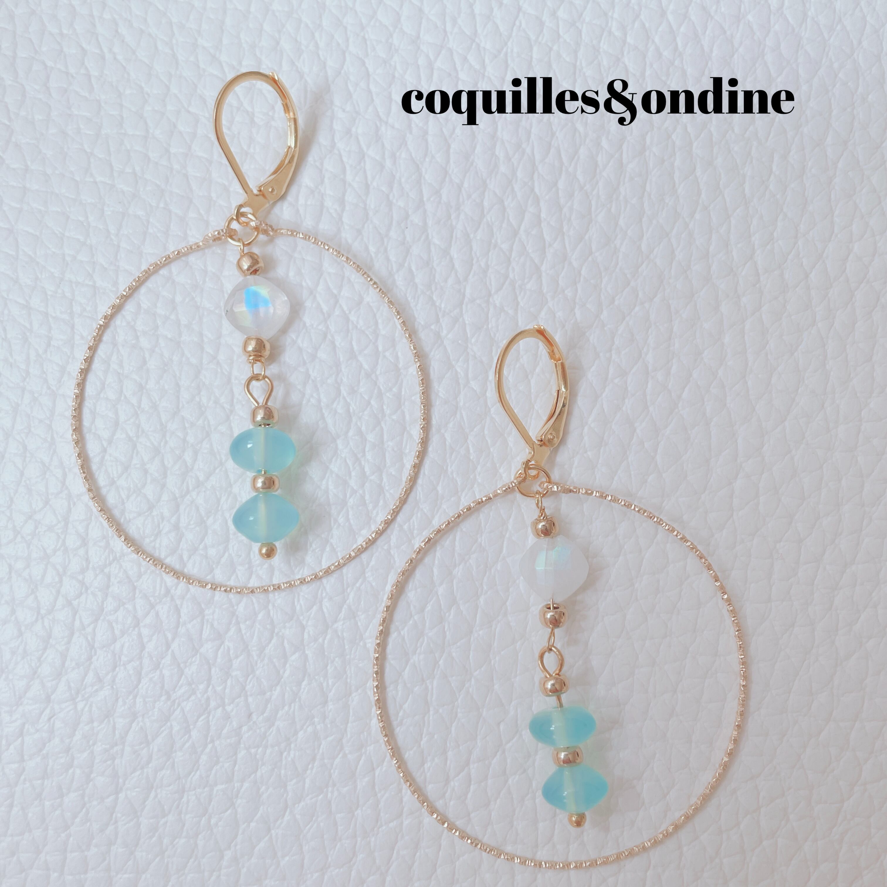 ・パーツ :レインボームーンストーン・シーブルーカルセドニー・フープワイヤー(18kgf)