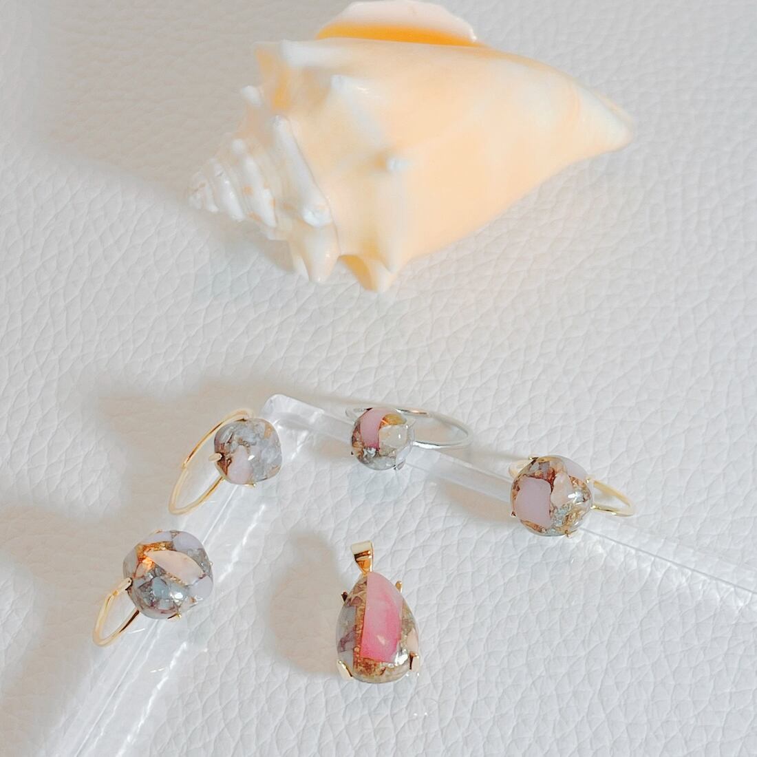 ビーズ、天然石、シェル、サンゴは、一つ一つわずかに形が違います。またその周りにワイヤーなどを手作業で作業をしておりますので写真とは多少形やサイズが変わる場合があります。予めご了承下さいますようお願いいたします。