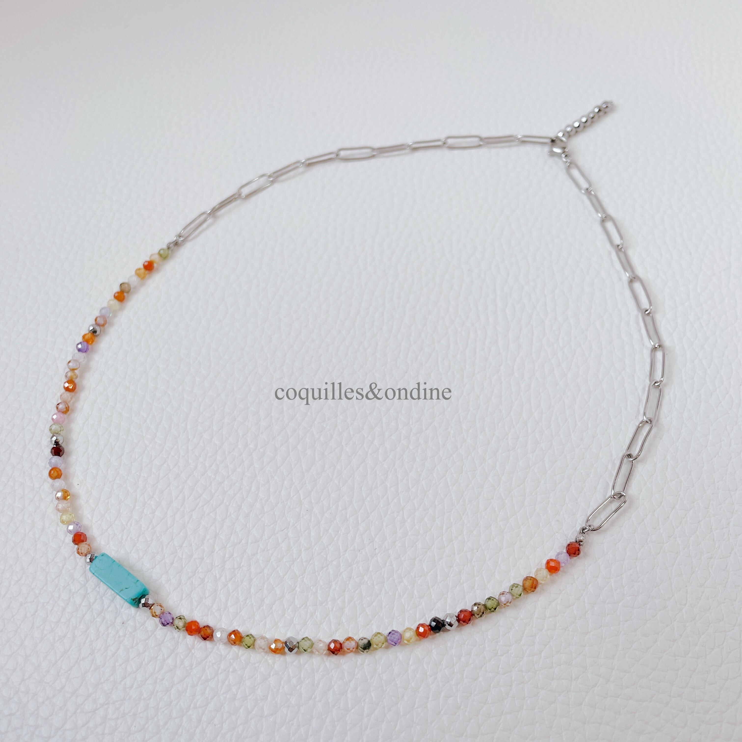 カットが施されているのでキラキラ輝きます。マグネサイトターコイズが入ってるので南国ぽく雰囲気に。