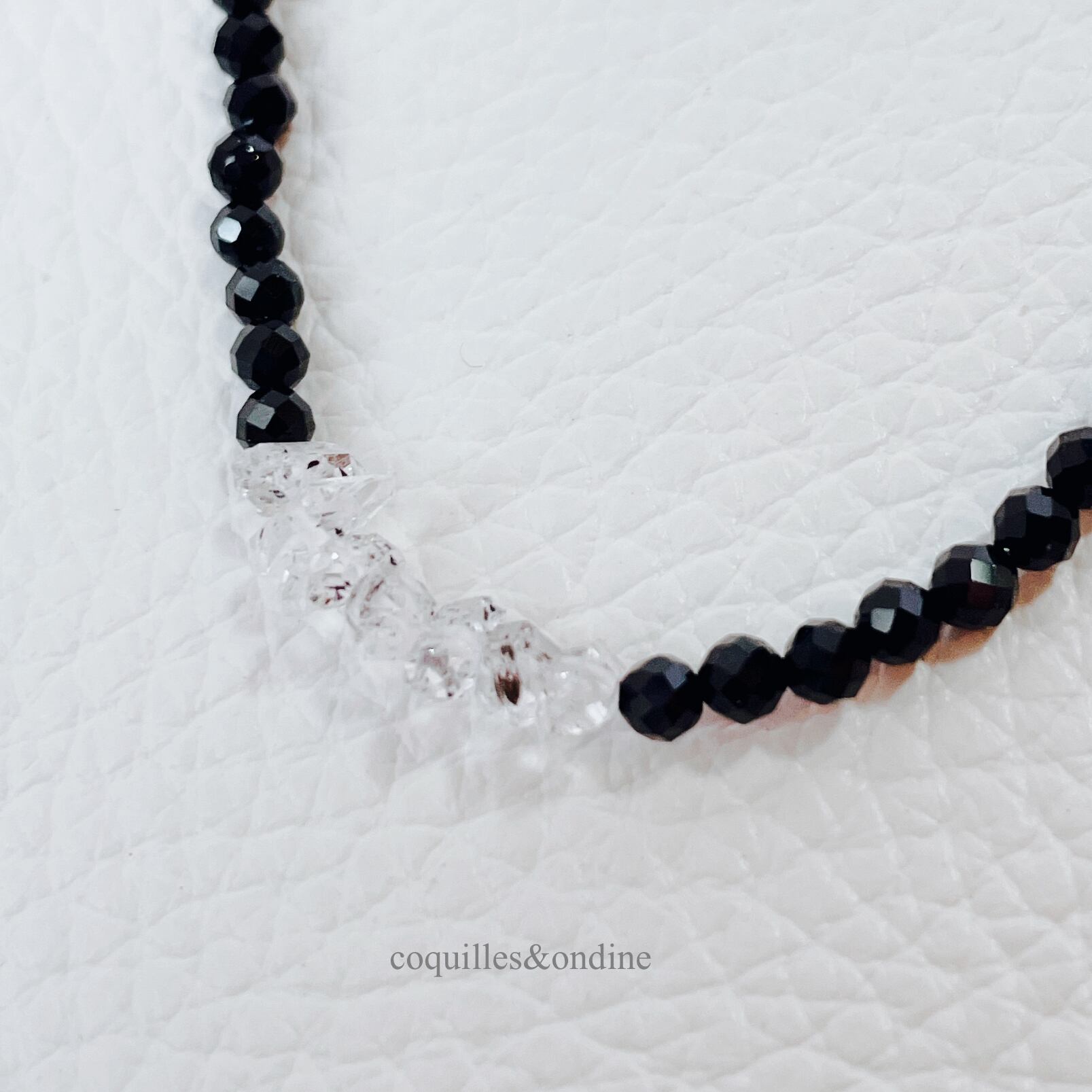・パーツ(ストーン):ブラックスピネル・ヘマタイト(シルバーコーティング)、ダブルポインツクォーツ