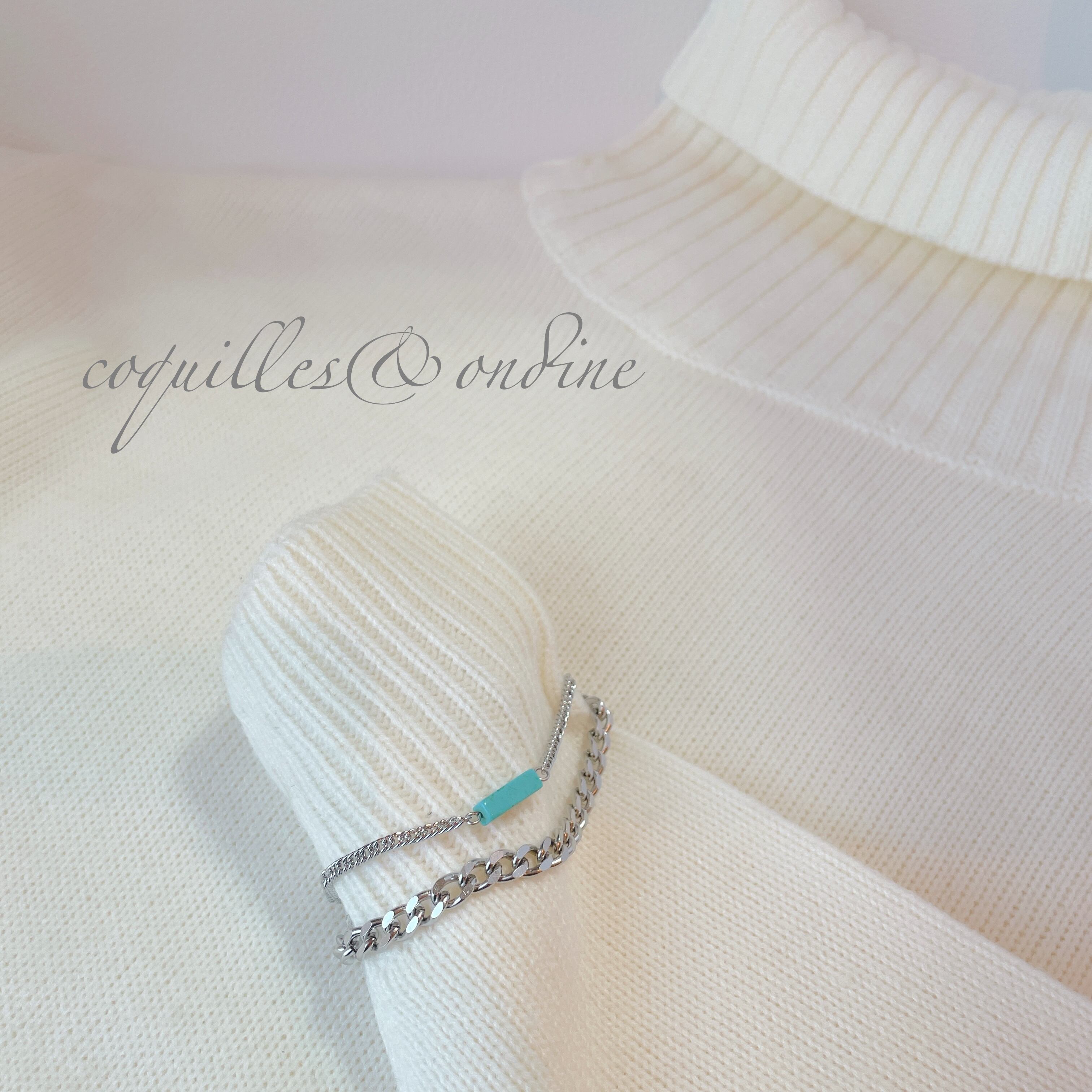 ターコイズダブルチェーン ブレスレット(ステンレス)
