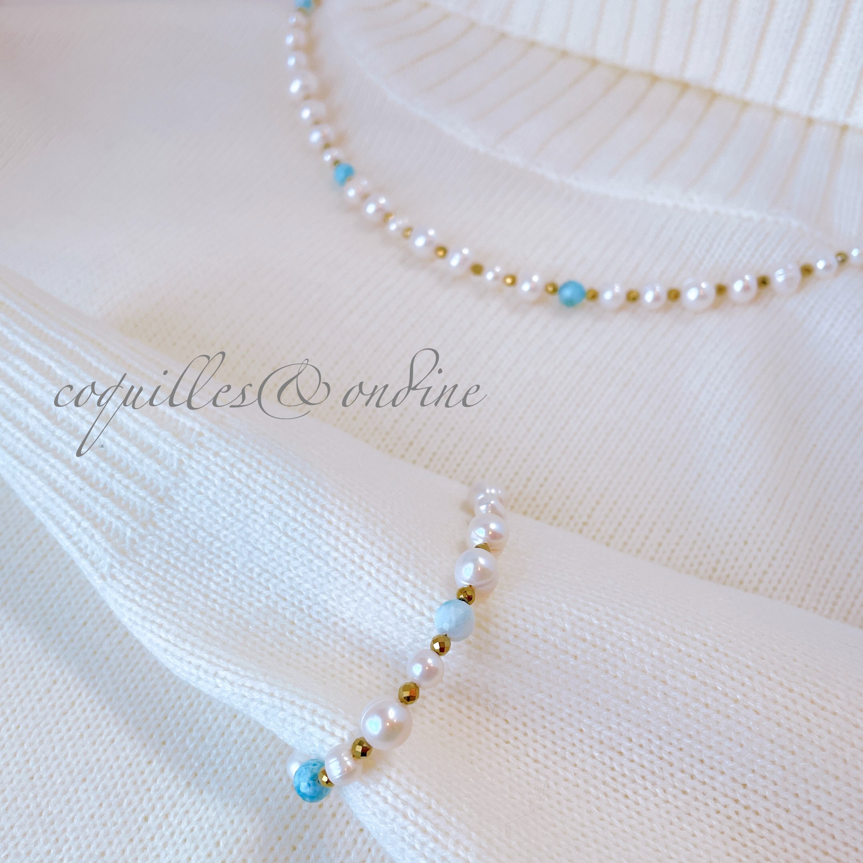 ・パーツ :天然淡水パール、ラリマー、ヘマタイト(ゴールドコーティング・シルバーコーティング)