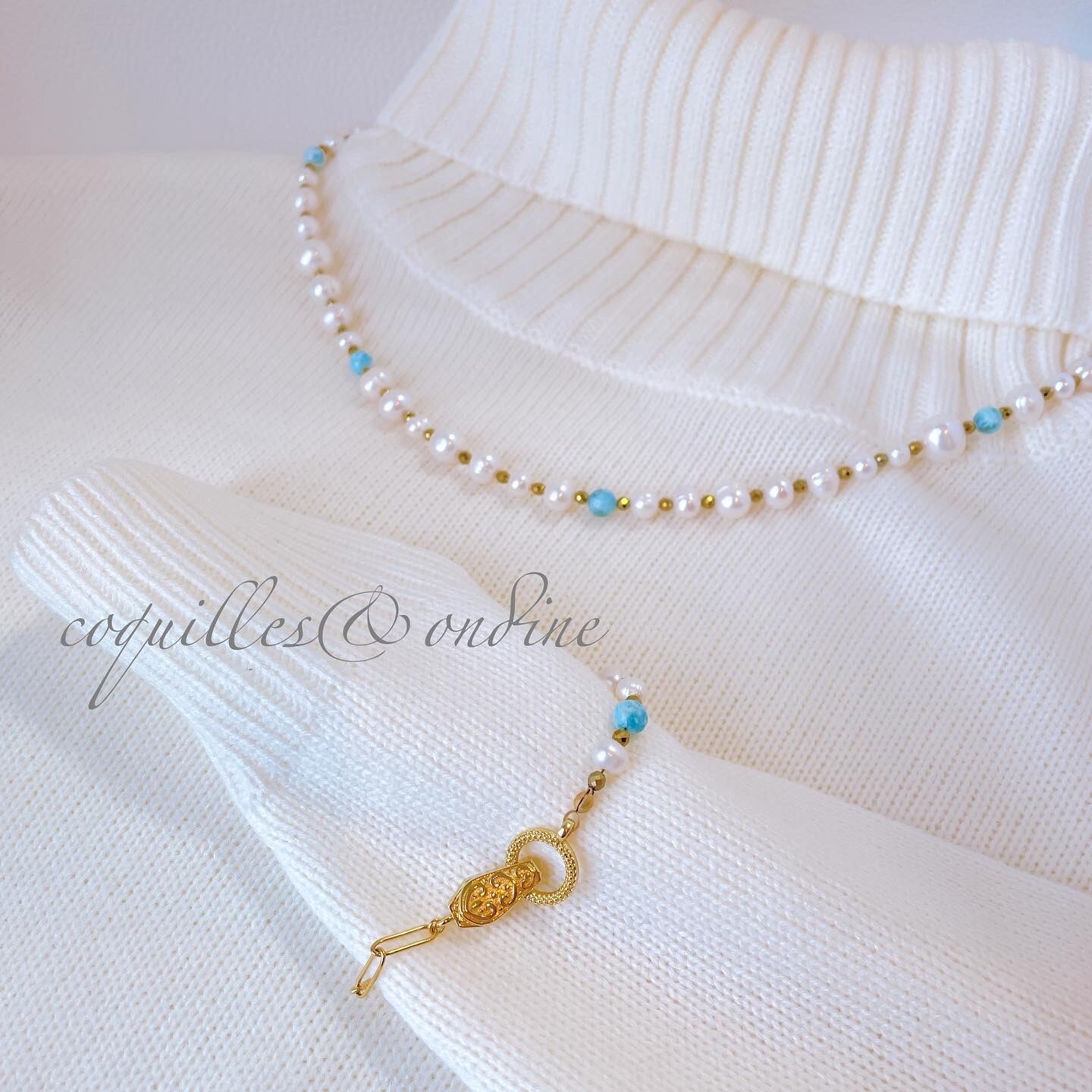 ・パーツ :天然淡水パール、ラリマー、ヘマタイト(ゴールドコーティング・シルバーコーティング)
