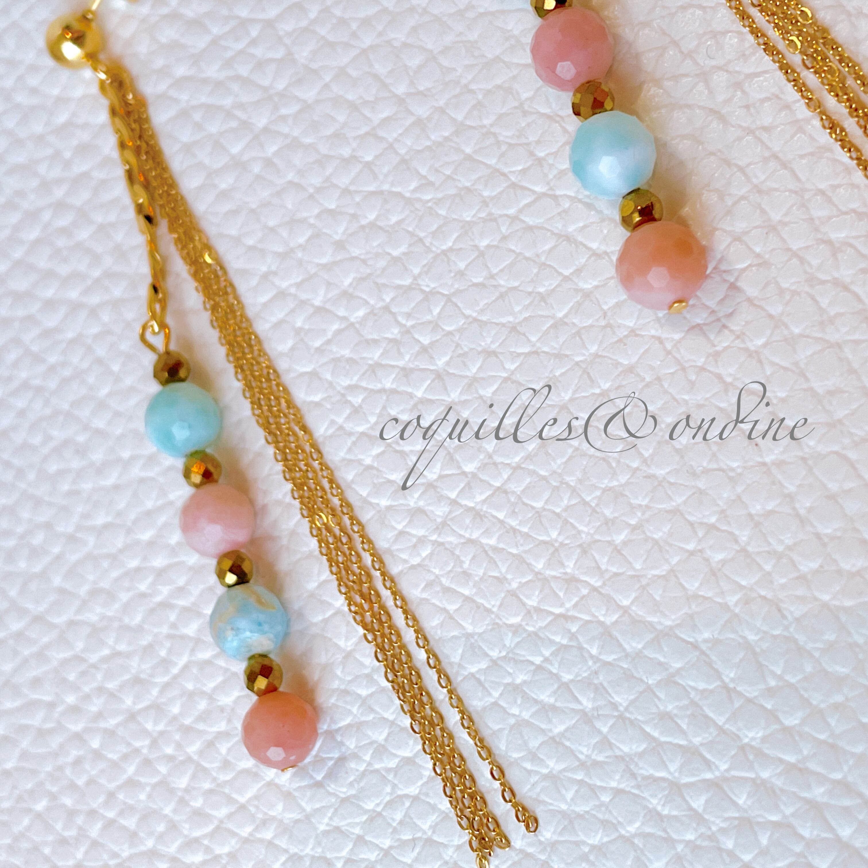 ・パーツ :ラリマー、ピンクオパール、クリソプレーズ、ストライプアメジスト