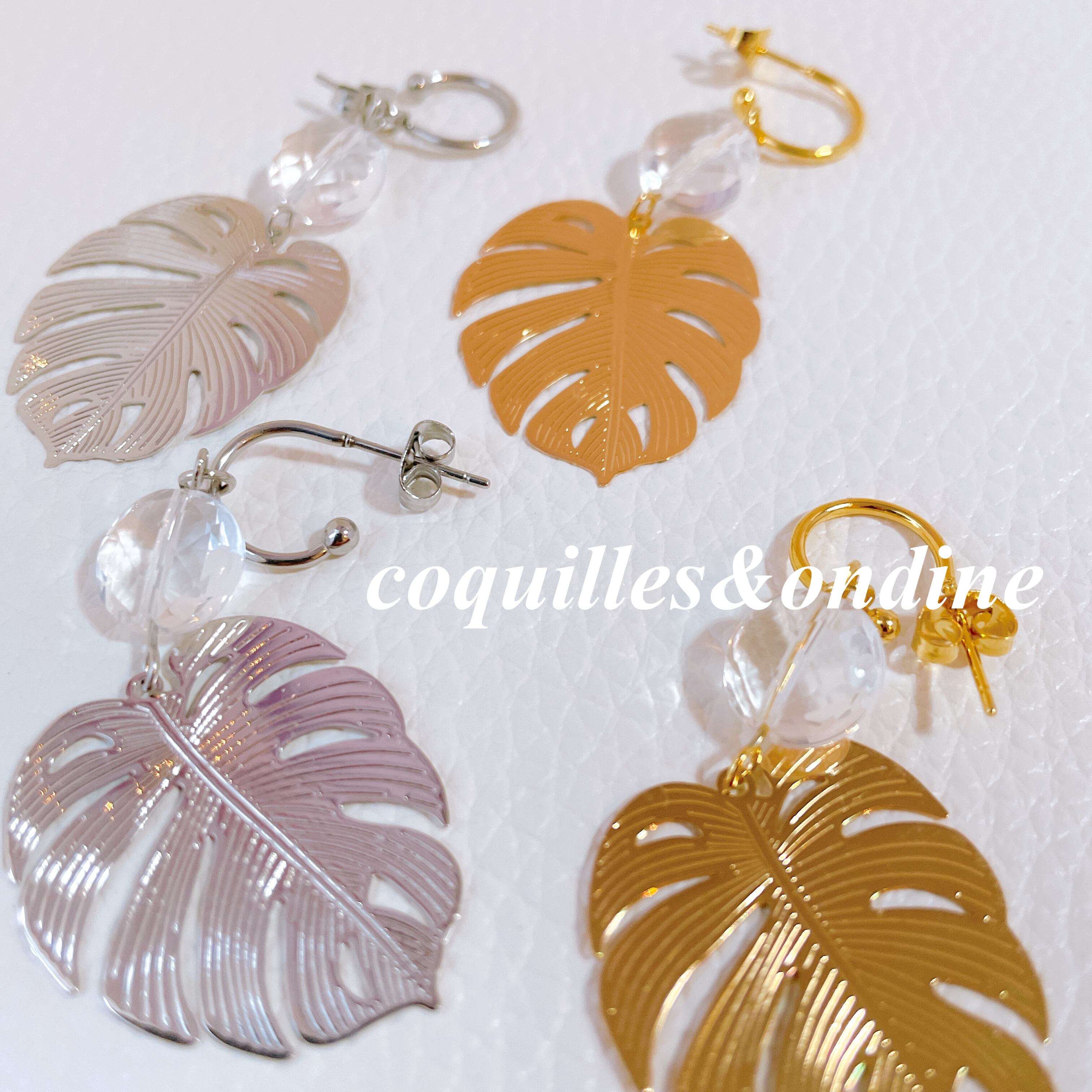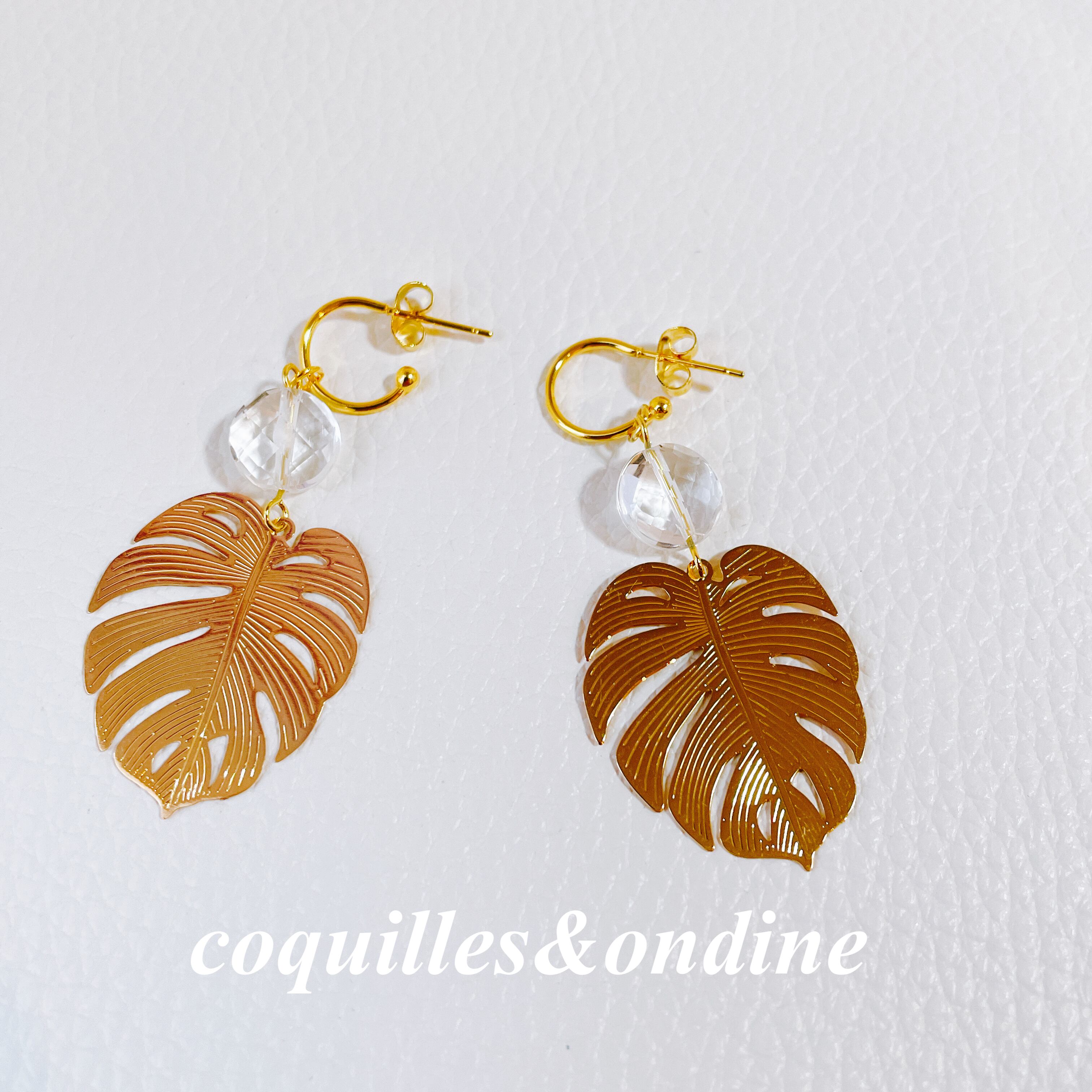 ・パーツ :クリスタル モンステラプレート(真鍮)