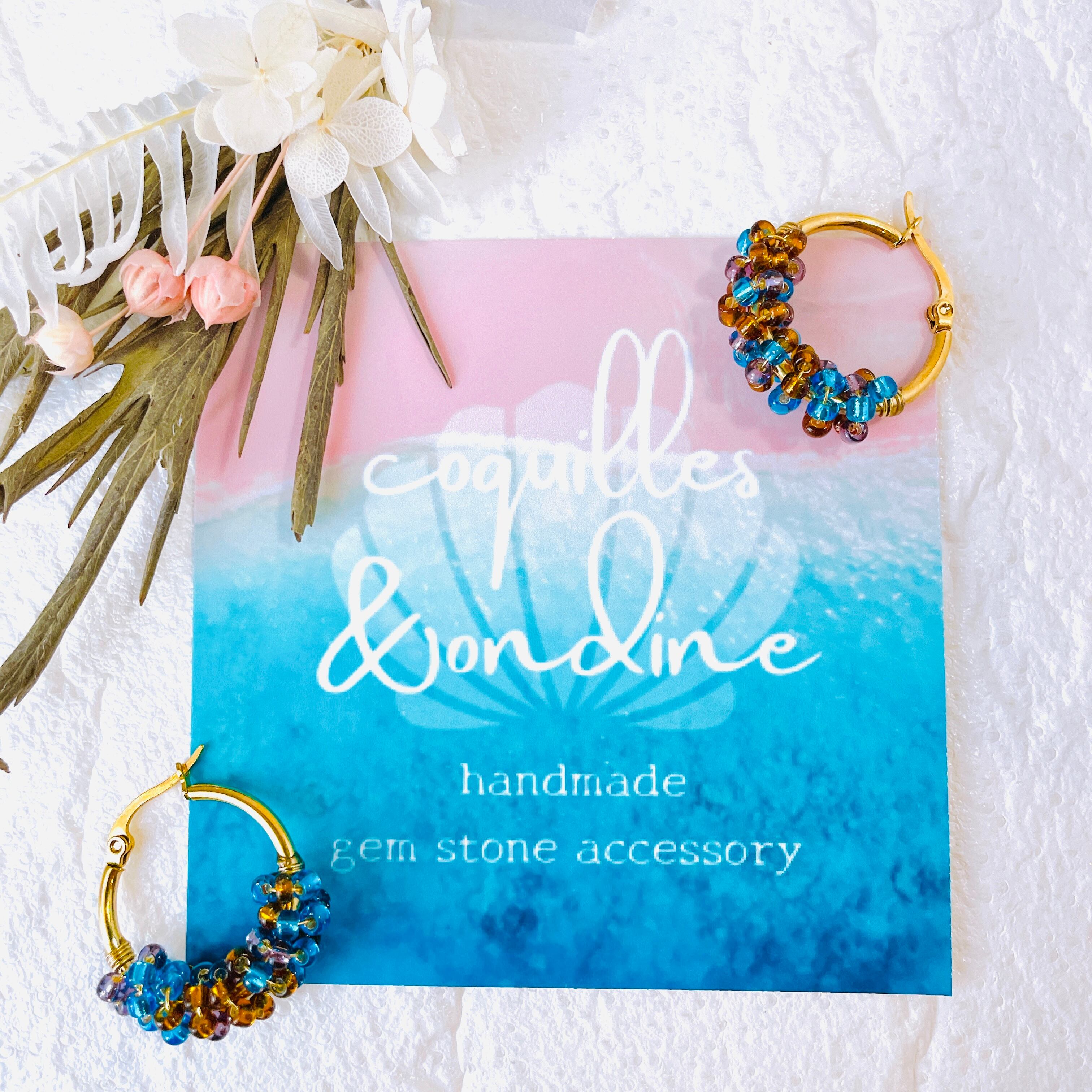 ビーズ、天然石、シェル、サンゴは、一つ一つわずかに形が違います。またその周りにワイヤーなどを手作業で作業をしておりますので写真とは多少形やサイズが変わる場合があります。予めご了承下さいますようお願いいたします。